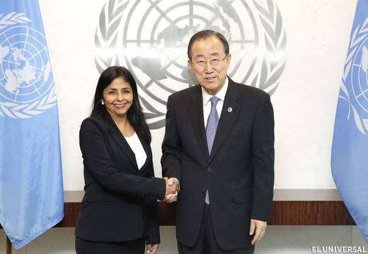 Ban se reunió este viernes con la canciller venezolana, Delcy Rodríguez, quien le entregó una carta del presidente Nicolás Maduro pidiendo los "buenos oficios" de la ONU para resolver su controversia con Guayana, informó la oficina de prensa de la ONU, destacó la agencia Efe.